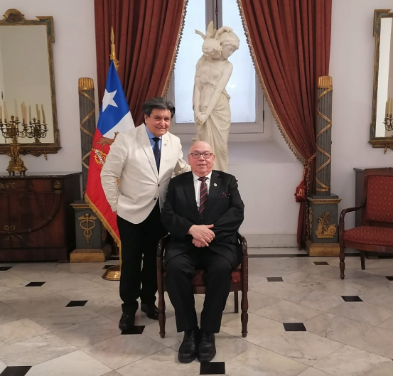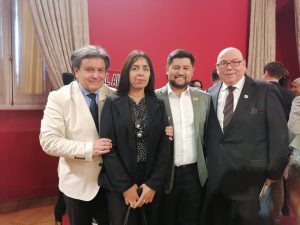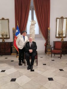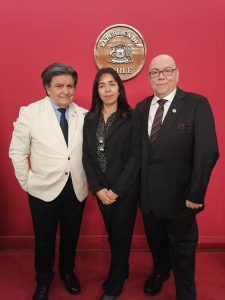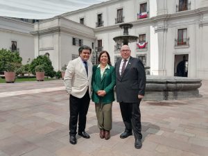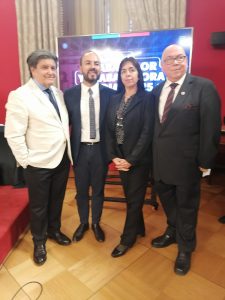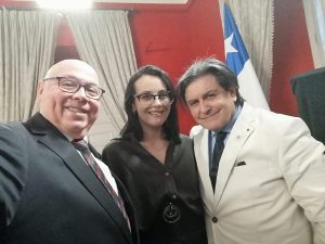 Junto a su Directora ejecutiva de ChileValora, señora Ximena Rivillo Oróstica, Presidente Asociación Locutores Chile señor Cristián Riquelme Duarte (Derecha) Arístides Aliaga Hurtado, Gestor iniciativa y Director General Corporativo. (Izquierda).